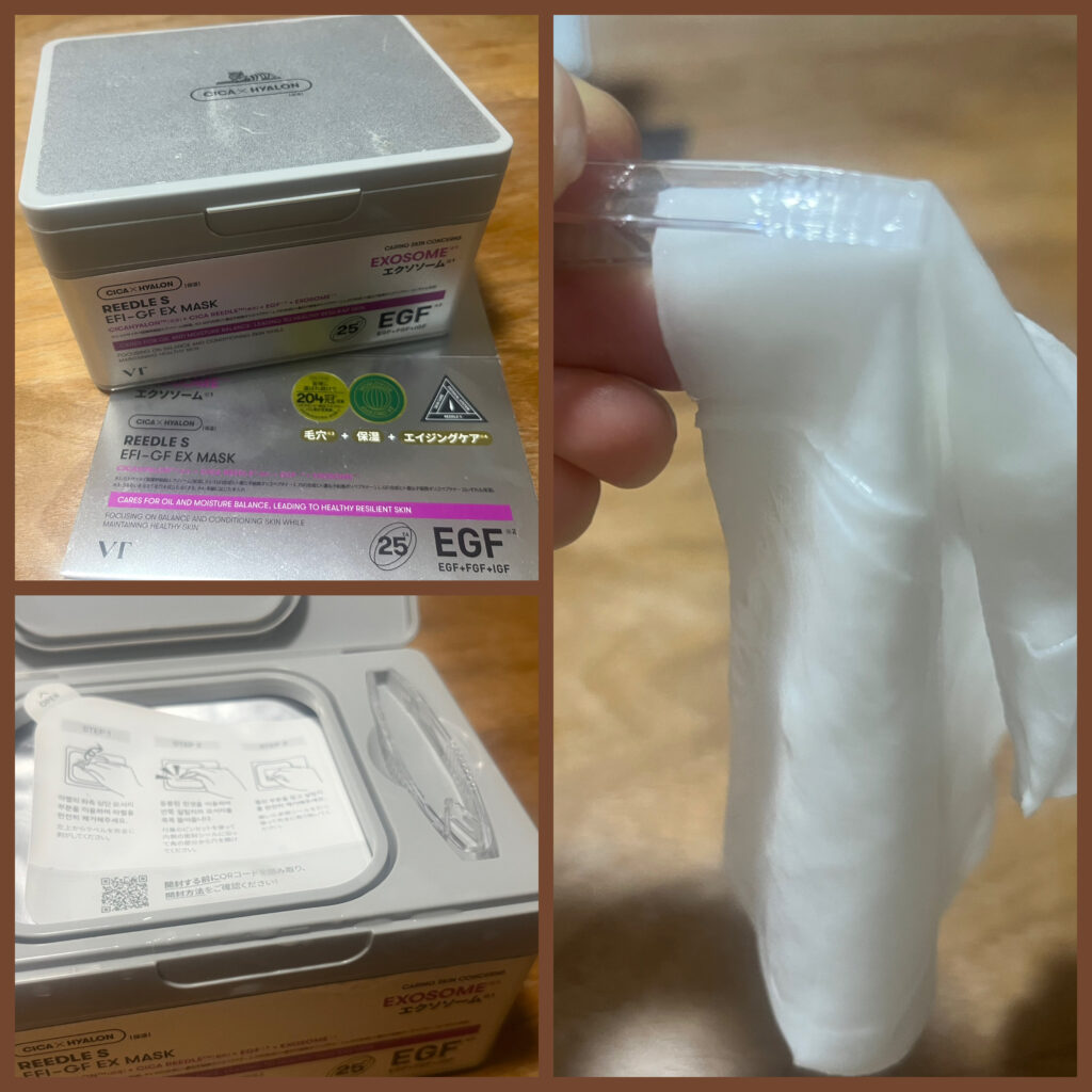 ですが、今ではどこでも手に入るようになり、昨年新大久保を訪れた際に、店員さんにエイジングに効果の高いシートマスクを尋ねたら、まさに美容針の入った「VTリードルS EFI-GF EXマスク」を勧められましたので、思い切って購入してみました😄